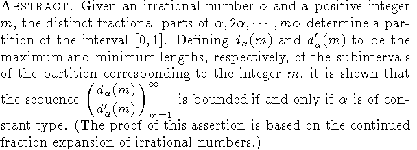 Keywords: Irrational numbers, Continued fractions